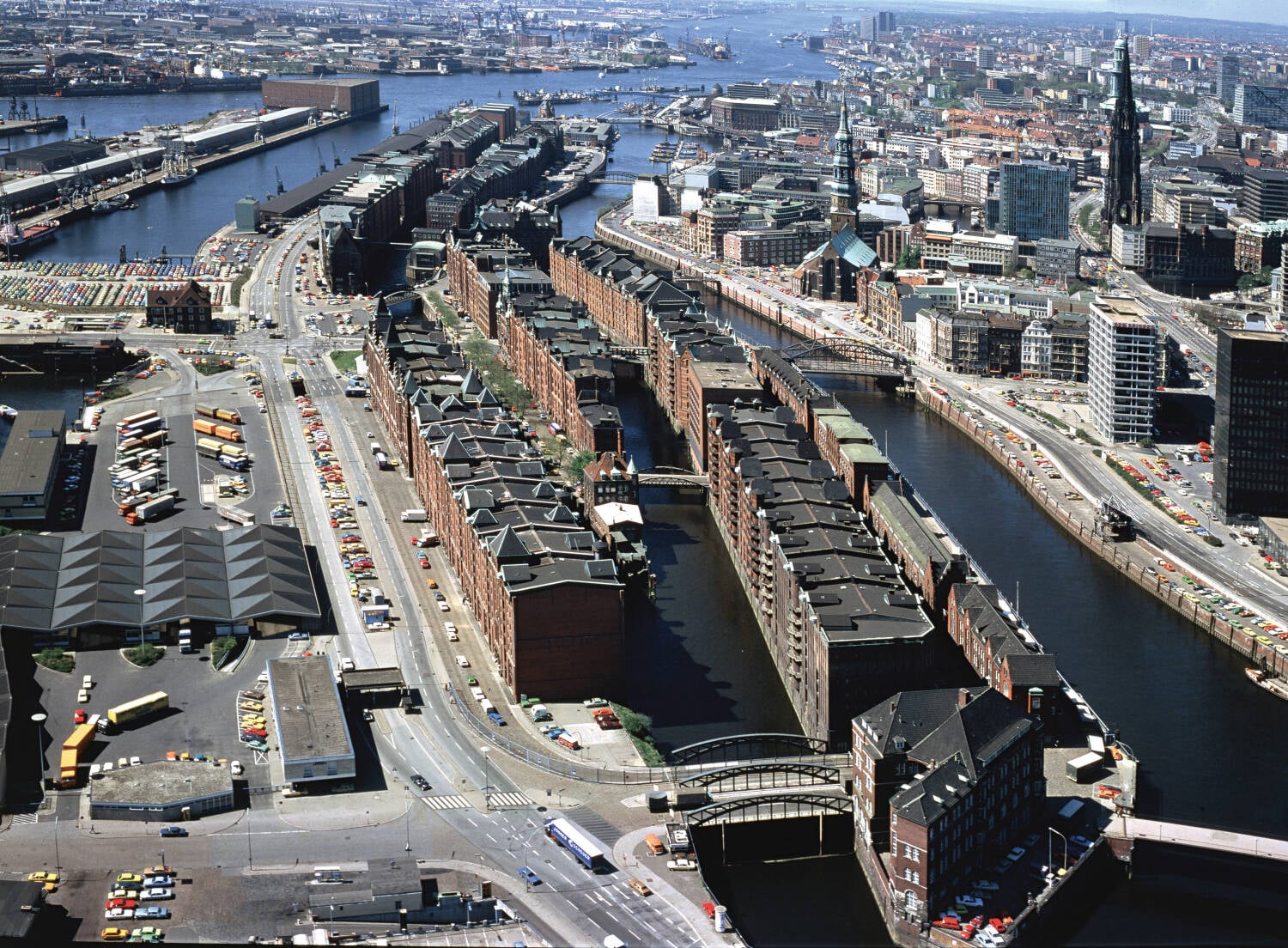 Freihafen inmitten der Stadt: Bis Ende der 1990er-Jahre arbeiteten hier noch viele Logistiker, der Freihafen grenzte unmittelbar an belebte Stadtquartiere. Es ist auch der HHLA zu verdanken, dass heute die Hafen-City attraktive Wohnungen am Wasser bietet.
