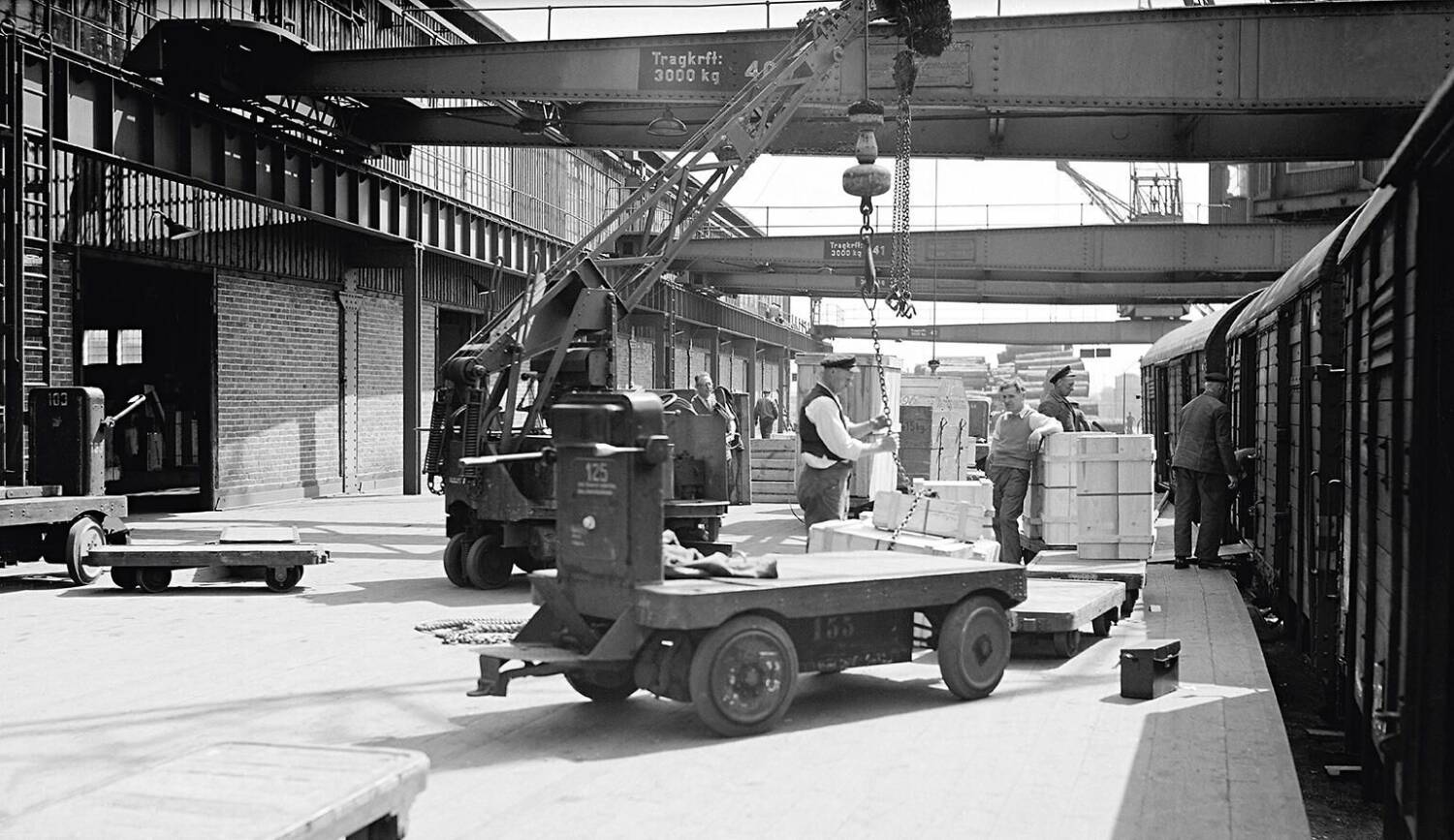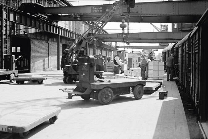 Technologiesprung: Seit 1925 wurden neuartige Elektrokarren im Hafen eingesetzt.