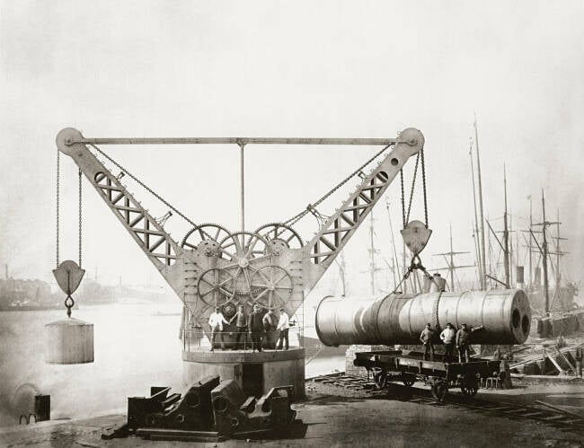 40 Tonnen zu bewegen war 1875 noch mit Muskelkraft möglich, dank Zahnrädern und Kontergewicht. Trotz Kraftumlenkung musste viel gekurbelt werden.